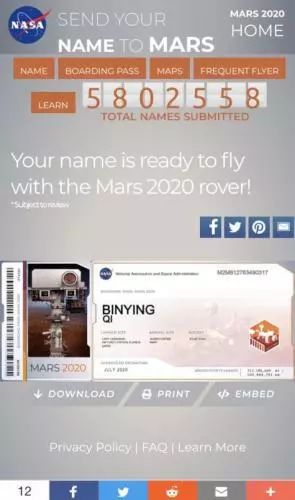 之前的5月20号,NASA时隔多年再次启动把名字送上火星的活动;将利用2020火星(Mars)探索计划,以芯片方式将地球人的名字送上火星;虽然是常规操作,但人气极高。