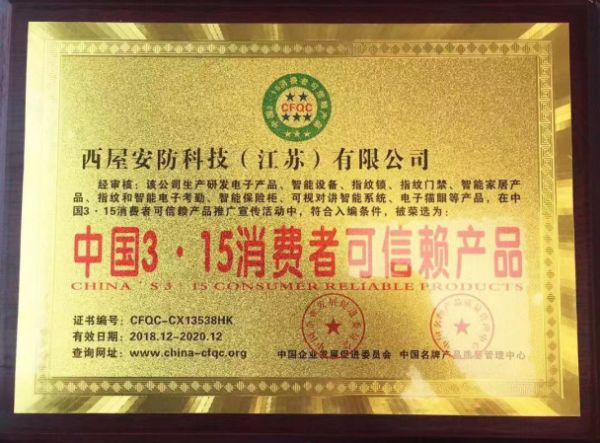 西屋安防作为智能锁优质品牌入选参展,自然是经受住考验的。经过中国企业发展促进委员会及中国名牌产品质量管理中心审核,西屋安防生产研发电子产品、智能设备、指纹锁、指纹门禁、智能家居产品等,在中国3.15消费者可信赖产品推广宣传活动中,符合入编条件,被选为中国3.15消费者可信赖产品。