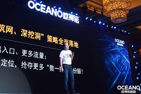 在本次会议上,欧神诺陶瓷总裁陈家旺针对如今整个陶瓷行业中供销失衡大下滑、终端“大萧条”式需求萎缩、以价格战委曲求全等严峻现象进行了精辟的梳理和分析,并结合当前行业市场形势,指出从总部到终端应形成“不拿环境当借口,不抱行业有转机,正视不足补短板” 的统一战斗思想,聚焦火力,以快制快,“争山头、占地盘、抢蛋糕、换赛道”,更以“三大”主轴+“六力”护航为主题内容,全面阐释了欧神诺下一步的发展方向以及战略布局。