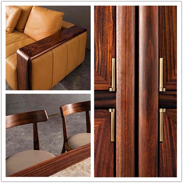 在选材上,琥珀甄选百年方能成材的顶级名贵红木用材——黑酸枝,木质结构细腻醇厚、纹理清晰,制作出来的家具坚固耐用,能够历经百年而不变形,具有极高的典藏和经济价值;皮面选用德国顶级原生态磨砂皮,是宾利等顶级豪车内饰专配,既葆有天然皮革的弹性,而且触感细腻、色泽均匀,更具奢侈享受;精选源自意大利的进口琥珀石,石质晶莹脂润,色泽浑然天成,纹理自然独特,每一块都是独一无二的艺术品。