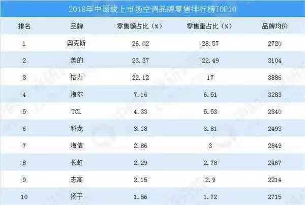 据奥维云网数据显示,2018年奥克斯品牌均价为2720元,格力品牌均价为3886元,差价十分明显。同时这几年,奥克斯开展渠道变革,以“网批”模式,牢牢占据空调线上销售第一的位置。
