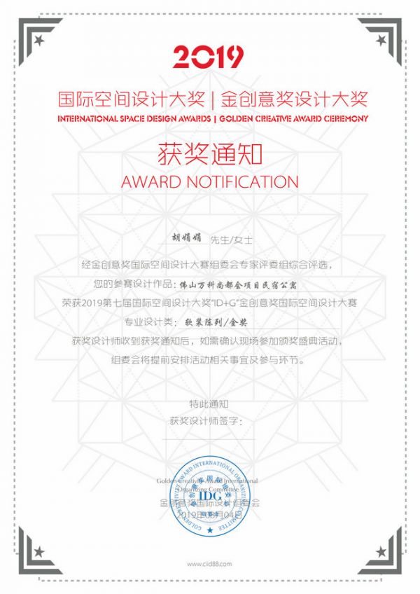 胡娟娟荣获第七届IDG金创意国际设计大奖:软装陈设类金奖