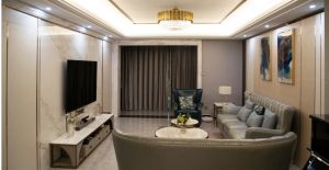 本案的设计以轻奢为主调。轻奢是一种生活态度,它着力于表现简约、舒适、低调而内敛的生活品质,同时又不失高贵与奢华。