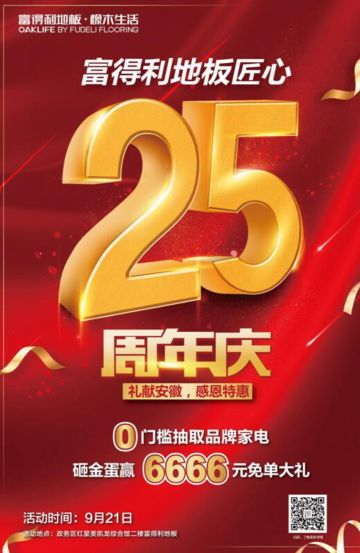 9月21日,合肥红星美凯龙政务区商场二楼,富得利地板匠心25周年“礼献安徽,感恩特惠”活动即将盛大拉开帷幕。