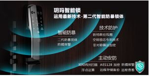 玥玛智能锁不同于其他品牌的智能锁,在防盗和防暴上具有独到优势,是从机械防盗向机械加智能防暴力的升级转型,结构从防盗提升到防暴力,全方位抵御技术开启和暴力手段的入侵,从机械防盗升级为智能家居防盗,既时尚智能又安全无忧。犹如一个漂亮的女子,既能上得厅堂,又能入得厨房,方能称之为完美。应用目前智能锁行业最新、高级别安全智能防盗技术的第二代智能防暴锁体的玥玛三防智能锁已于2019年4月18日新品发布会正式面市,发布会现场短短几个小时订货超3195万,其高度实现了智能三防:智能防暴、技术防护、主动安防。加上一体化视频的安防方案,结合智能猫眼+夜视红外灯,完美实现同步秒传、手机远程视频语音对讲、远程视频监控录像回放、同步手机信息、远程存储备份等功能,是兼容更稳定的NB-IoT的物联网防盗防暴智能锁,突破了目前行业其他智能锁的性能特点,不仅在智能便利上前进一大步,更大程度上的保障了智能锁的防盗安全。