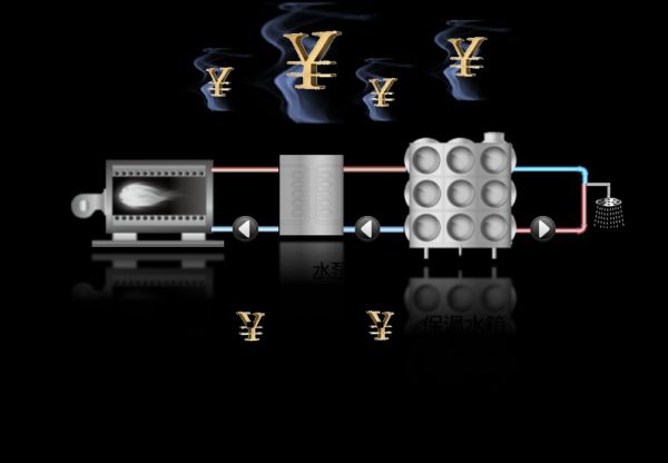 大型锅炉:换热环节多,水泵多,每增加一个环节,增加一份能耗。