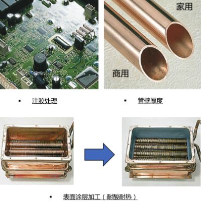 高耐久性换热管:商用热交换管路的管壁厚度比家用热水器增厚25%,对于小流量使用以及不使用时产生的结露和大流量使用时产生的磨损都有很好的防御。