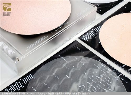 45件标章得奖作品中,产品设计类占15件,传达设计类占24件,空间设计类3件,整合设计类共有3件。得奖作品中,社会关怀、永续议题依旧是新锐设计师关注的焦点,试图透过设计让生活更友善。在产品设计类方面,台湾设计师陈世真、童婉琳、邱亭凯、刘家亨、陈俊宇为听障者设计的音乐专辑“432Hzzz:“//////””,透过实验性精神将声音视觉化,经由雷射光照射在贴有反光片的音响上,当音乐播放时音响产生的振动影响反光片晃动,反射出千变万化的雷射光,让听障者享受音乐带来的节奏快感。台湾设计师林咏祥、黄子瑄的作品“水质保护者-除藻机”,在非常态流动的湖泊区域,建立一套生态模拟系统,制造水流并净化水质,进而调整合适的生态系统。