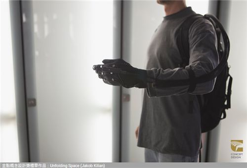整合设计类方面,台湾设计师郑巧琪、李郁欣、曾钰婷的“海藻净滩玩具组”,可作为沙滩玩具及净滩工具,采用海藻纸制成,具有自然分解的特性,做到取之于海洋用之于海洋的思维。德国设计师雅各基利安(Jakob Kilian)的“Unfolding Space”,以感官替代科技帮助视障者用手来看世界,透过深度摄影机产生3D影像投射并产生震动至手背上,帮助视障者行走时避开障碍物,以确保安全。