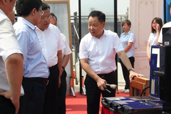 (李董向市委市政府领导展示鑫迪产品细节)