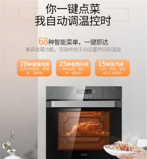 其内置蒸烤混合技术,相辅相成烹饪更美味。标配68种中文智能菜单,在70L的大容量内腔里,一键选定菜式编号,系统自动设定时间、温度,新手小白也能烹饪出美味大餐。