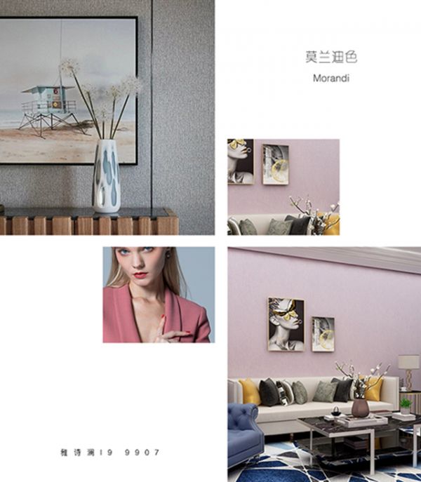 雅诗澜的设计师提前预知了时尚潮流将莫兰迪色运用到墙纸上,