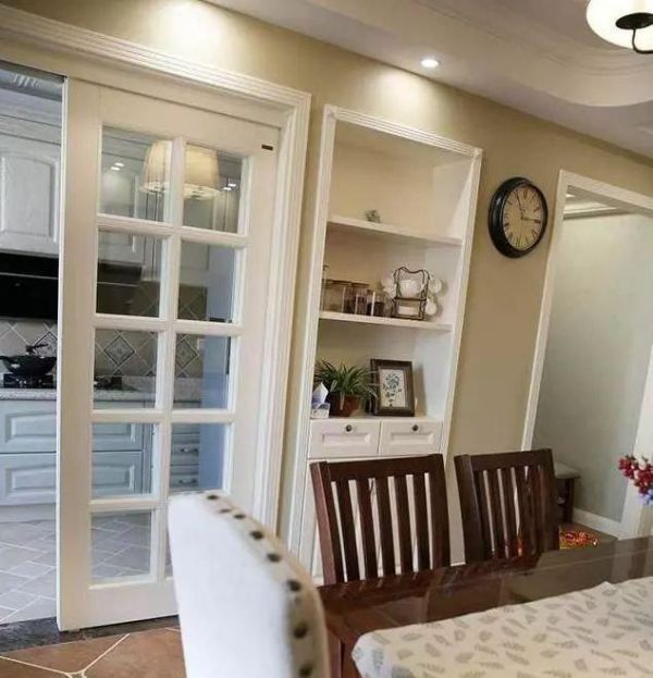 餐厅和厨房之间用玻璃移门隔开,作为相对独立的厨房就不用担心油烟的问题了。