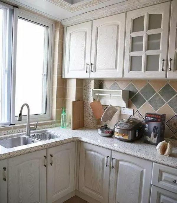 厨房,虽然空间比较小,但是采光还是很不错的,像这种全明户型真的好喜欢。厨房的装饰就比较倾向于淡色调,不仅显得更加的简洁,还很上档次,美式格调更加突出。