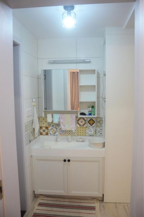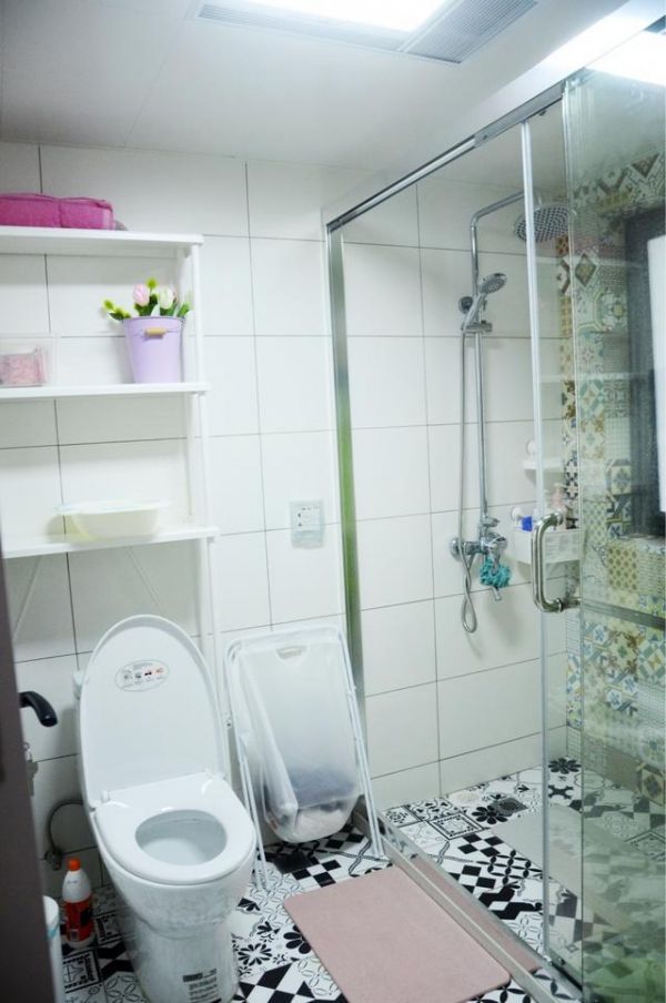 卫生间本来的格局就做了干湿分区,洗手台在浴室的对面,这样也很方便洗手和沐浴了。浴室内部还有做了干湿分区,用玻璃移门把淋浴间和马桶分开,非常的实用,而且看起来干干净净的,温馨舒适。