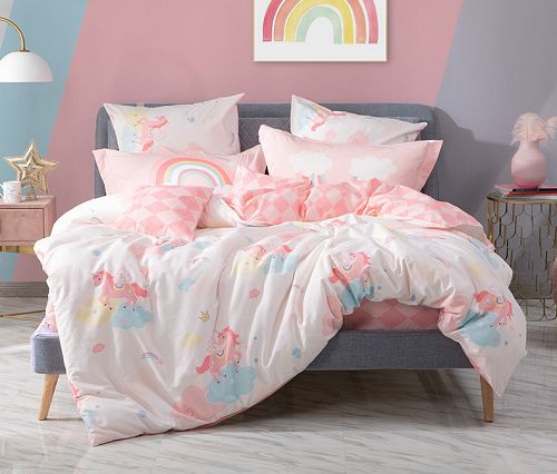多喜爱是国内较为知名的家居床品品牌。梦幻星辰床上ins少女纯棉,采用纯棉面料,舒适抗菌,吸湿透气性好。粉嫩独角兽、七色的彩虹、柔软的云朵,这些梦幻的图案象征着爱与守护的独角兽在梦幻的国度里守护你;同色系的粉色搭配菱格元素款式清新自然,给你带来梦幻般的感觉,让你舒适睡眠一整晚。
