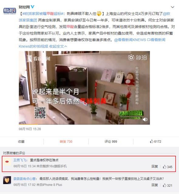 所以按照目前的情况,消费者想要维权存在着诸多难点。不可能整个房间就用一块板材吧?像截图中网友留言那样,“买一块板子放地上又当桌子又当床”??