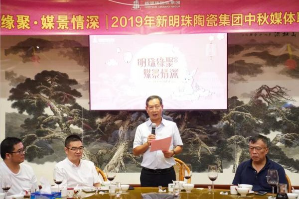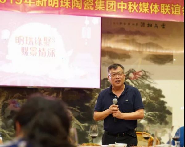 新明珠陶瓷集团副总裁陈先辉、邓勇也分别致词,向与会的媒体朋友送上中秋的祝福和诚挚的敬意。陈先辉副总裁说道,现在是互联网的时代,是内容为王的时代,是立体式传播渠道为王的时代,各大媒体给予新明珠高度的关注,使得我们的全体干部员工对集团的未来更有信心,经销商对企业品牌更有信心,协会的领导对行业的发展更有信心。她还分享了2019年集团在推进“四轮驱动”战略(即“智能制造、互联网+、品牌升级、管理升级”)和构建“三新”核心竞争力(即“新智造、新研发、新零售”),在企业转型升级方面取得的成绩。邓勇副总裁在发言中希望媒体朋友们多点赞新明珠,一如既往地支持新明珠。