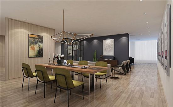 比如在徐攀主抓的泰禾拾景园项目的中下叠别墅地下空间,光线普遍不佳,所以他在材质上会推荐客户选择木质、皮质的材料,使空间更加温暖。而在色彩选择上,多推荐偏暖色的色彩搭配。