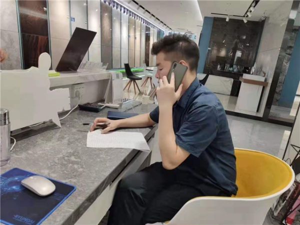 段磊:先讲一个与客户有关的事情吧,有这样一个客户,他是2年前来澳翔买了砖,当时的房子是180㎡的商品房,我们聊得也挺不错的。然后今年他的别墅装修了,他又来找我买砖,他说澳翔的产品无论是花色,还是价格都是让他非常满意的。并且,他还把身边的朋友介绍过来,帮我做宣传的说,澳翔的砖就是好。装修就是要买澳翔的砖!