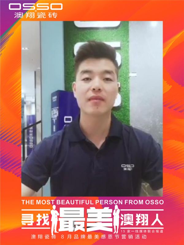 澳翔瓷砖成立13年了,回首过往,感慨万千,感谢那些与我们同心同行的家人们。寻找最美澳翔人,让我们把关注点放到身处一线的澳翔人身上,挖掘更多与澳翔相关的感人事迹。传递澳翔瓷砖的正能量,传递澳翔人的精气神!