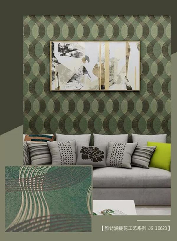 雅诗澜墙布采用绿色环保的布基材料,在铺贴时选择品质达到食品级的品牌糯米胶进行施工,确保安全环保,并且经过检测检验,符合国家建材标准,无毒无味。施工无噪音和粉尘污染,完全可以当天施工,当天入住。