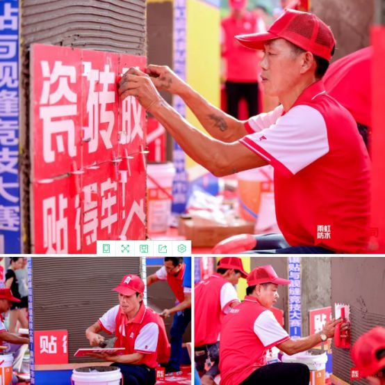 当天,多名能工巧匠齐聚一堂,现场展示娴熟过硬的贴砖技艺与靓缝技术。巧匠师傅们用敬业与专注成就了一场实力比拼的专业竞技,完美诠释了真正的“匠人精神”。