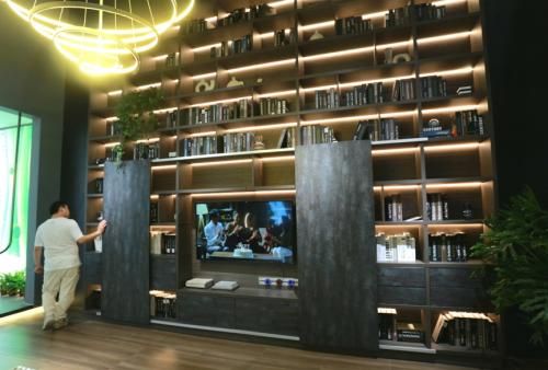 在客厅空间,全友“墙变系统”精彩亮相。新颖实用的“墙变系统”吸引了众多观者围观。据了解,“墙变系统”可以通过移动层板、侧板,改变收纳形态,提升空间使用率。同时,“墙变系统”的板材均采用通过国家标准的环保板材,在随心DIY的同时,保障家人健康。