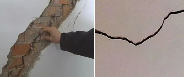 墙体开裂是由于地基沉降不均匀、地震等原因导致的,肉眼可见一道十分明显的大裂痕。