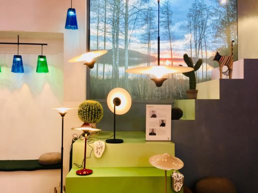 【刘重言】:这次我们展出2020年初准备在中国推出的15个全新创意北欧简约潮流灯饰和音响系列。产品独一无二,全部由我们的北欧设计师团队所设计的。最为突出的新品有:Copter-能开合展翅的吊灯,Soho-北欧冰屋慨念吸顶灯,Hana-来自阿尔卑斯山的环保材料壁灯,Aurora-北欧极光慨念玻璃吊灯,Livewood-超薄重量级蓝牙音响等等。