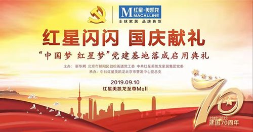 2019年9月10日,由中共红星美凯龙家居集团党委与新华网、北京市朝阳区劲松街道党工委共同筹建的“中国梦 红星梦”党建基地在红星美凯龙至尊Mall商场7层正式投入使用。