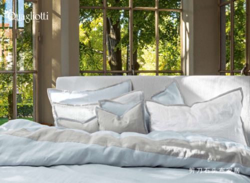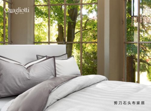 始于1933年的家纺品牌QUAGLIOTTI以锦缎床品和精美提花布艺闻名于世,在英国、法国、瑞士、意大利、美国等全球精品酒店里都能找到它的身影。其床品表面具有特殊的抽纱与挑纱,形成类似竹节的纹理,因此床品具有良好的透气吸湿性,舒适亲肤。
