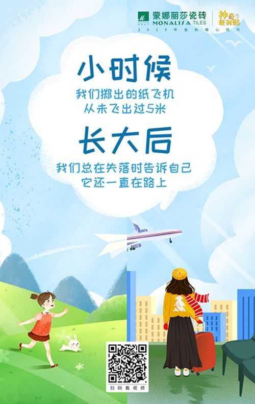 终于明白,你所怀念的不是那段旋律,那些人,那个场景,而是儿时跌倒了也能马上爬起来的勇气,是捕到一只蜻蜓的快乐,是即使离别也相信会再见的期待,是即使被现实打击得遍体鳞伤也能微笑着说“没什么大不了”的坚强。9月12日,蒙娜丽莎2019年金秋暖心短片,全网首发!敬请期待!