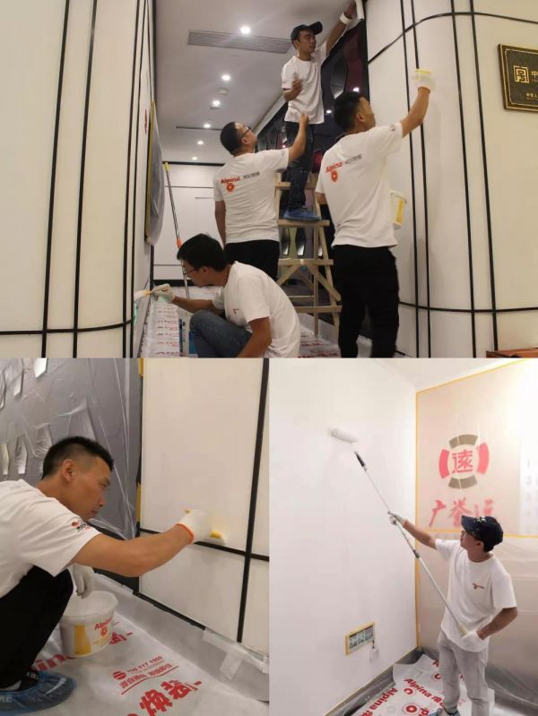 复杂的墙面需要专业涂刷工艺的支持,阿尔贝娜针对罗斯福公馆一日焕装项目定制德式施工团队。从罗斯福公馆内墙墙面特点出发,优选无异味、耐沾污、易清洁、耐擦洗、遮盖力强的环保尊典墙面漆,从而轻松应对公馆内人流量大所带来的墙面易脏污问题,辅以标准化德式工艺,为焕装“保驾护航”。