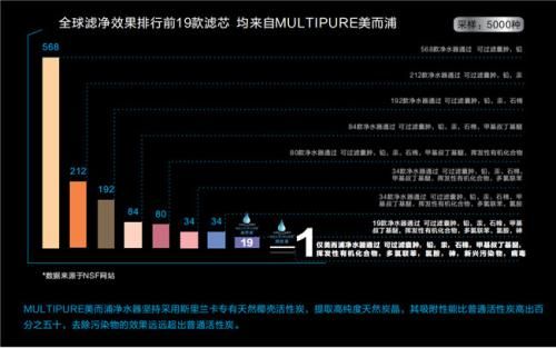 根据NSF网站数据显示,全球滤净效果排行前19款滤芯,均来自MULTIPURE美而浦!