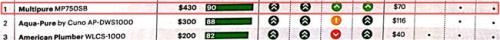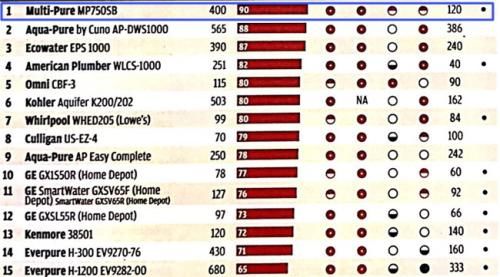 美而浦净水器多次荣获美国消费者报告推荐净水器榜首