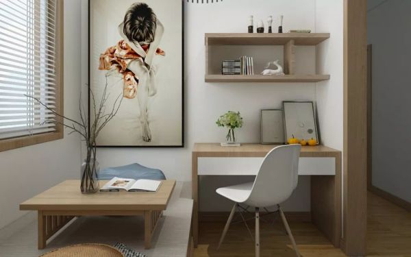 选用原木的书桌和柜子,保留木纹本身的纹理,富有质感,把大自然的气息带到书房中。这样文艺风满满的书房有谁会不喜欢呢。