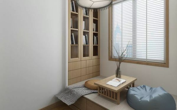 飘窗(平时也可以在上面坐着喝喝茶,好不惬意。有一个飘窗也太幸福了吧)底部做成了柜子,既满足了收纳的实用性,又没有破坏美观性。