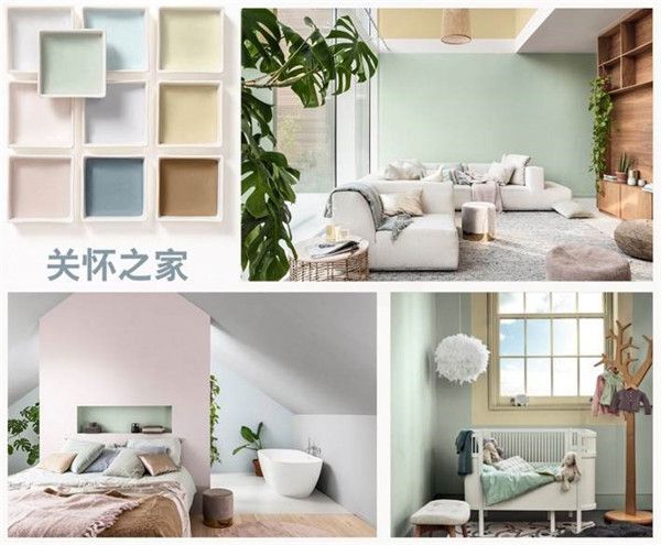 以年度色彩豆蔻青为核心,多乐士2020全球色彩趋势衍生出四款承载着不同情绪的搭配色盘,并以此为基础打造出四种各具特色的室内风格:“关怀之家”、“趣玩之家”、“创想之家”和“静思之家”,丰富多变的组合诠释着不同的个性、鲜明的情绪与潮流的生活方式,为更多家庭的家居空间与墙面配色带来全新的灵感与思考。