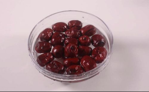 选用上好的饱满红枣,洗净浸泡10分钟,放入蒸箱,100℃蒸20分钟。