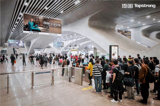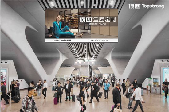 9月,顶固将陆续投放大型吊旗广告、LED灯箱广告在全国各地的高铁站内;