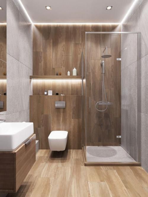 一些两种铺装效果,素白的更简单,而木地板的则视觉上更加温暖,在选购淋浴间使用的地板时,需要注意地板颜色尽量选用暖色调,尽量避免选择冷色调地板。