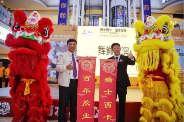 西卡建筑装修材料总裁徐英 与西卡中国总裁张烨炯 为瑞狮点睛