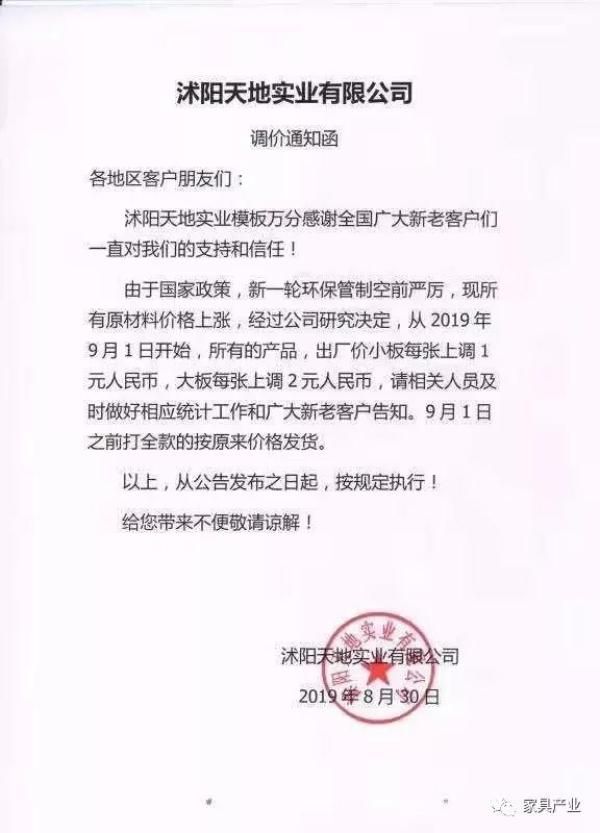 据悉,由于杨木单板等原材料短缺,限制了多层板的生产,加上金九银十即将到来,需求旺盛!廊坊,商丘,菏泽等地的一些板块公司已经发出涨价通知,而且每张板的价格涨价2元!