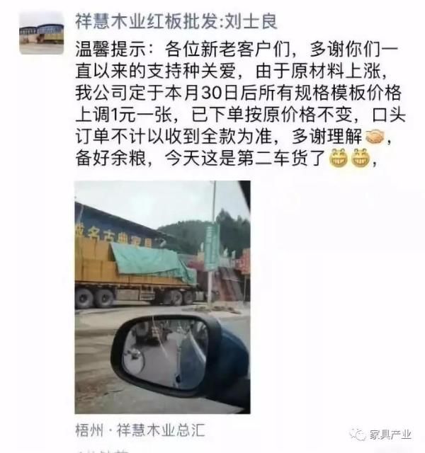 友情提醒:目前模板价格和运费探底,请做好旺季准备,下半年有大量用木材板材的家具企业,请提前做好备货准备,下单排单。库存要是放空,可能会直面更严峻的停产潮。(来源:大家居头条)
