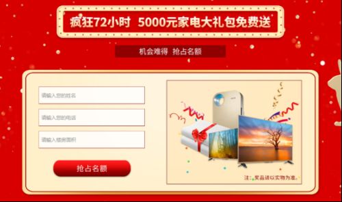 惊喜二:疯狂72小时,5000元家电大礼包免费送