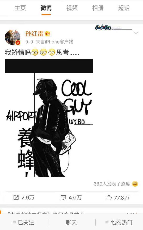 近日,孙红雷微博上传王一博机场造型的漫画,并发出灵魂拷问,称:“我矫情吗?思考……”引发双方粉丝狂欢。