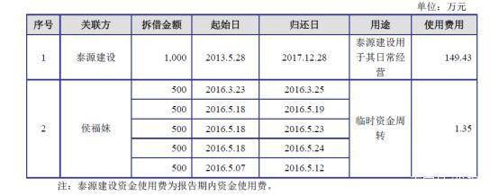 事实上,招股书在“关联方与公司发生的资金拆借交易”中披露:2016年因“临时资金周转”,侯福妹向公司拆借了2500万元。招股书同时还披露:“2016年度,公司拆借给侯福妹的资金主要是其用于短期资金周转。上述资金拆借天数较短,资金占用费金额较小,关联方已将该等费用与本金归还给公司。2017年和2018年,该等资金占用情形不再发生。”