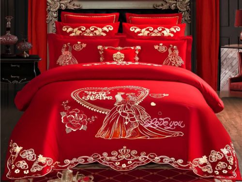 中国人购买婚庆床品讲究好寓意,比如龙凤呈祥、百年好合、百子贺喜、双喜临门等等。所以选购床品款式以带有美好寓意的绣花为主,刺绣是中国的传统工艺,丝线缠绕,情意绵绵,美好的寓意祝愿新人相亲相爱,相守白头。