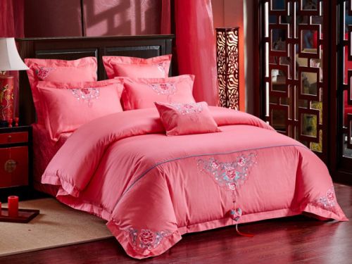 婚庆床品以红色为主,中国人结婚当天都要铺一套红色的床品,寓意新人从此红红火火幸福美满。随着时代的变迁,婚庆床品的颜色也日趋多样化,有的新婚夫妻不喜欢大红色,在91家纺网也有粉、金、紫等其他花色以供选择,挑选时除了个人喜好外,结合整体房间风格进行选择效果更佳。